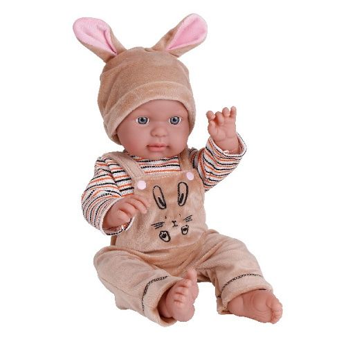 Miminko ve stylovém oblečení s čepičkou. Má pohyblivé klouby i hlavičku. Velikost 40 cm.