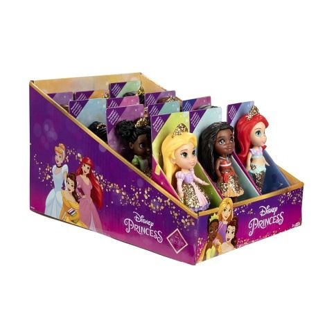 Panenka mini Disney Princezna – sesbírej je všechny. Princezny jsou oblečeny do třpytivých šatů. Kolekce se skládá z 12 různých panenek. Velikost panenky 8 cm.