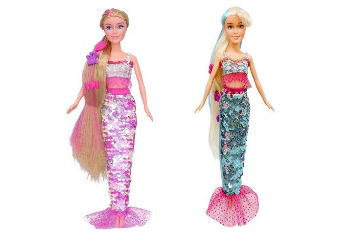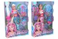 Panenka mořská panna s doplňky. Velikost 29cm. Doplňky: šperky pro panenku, figurka delfína, hřeben na vlasy. Asort: modrá, růžová