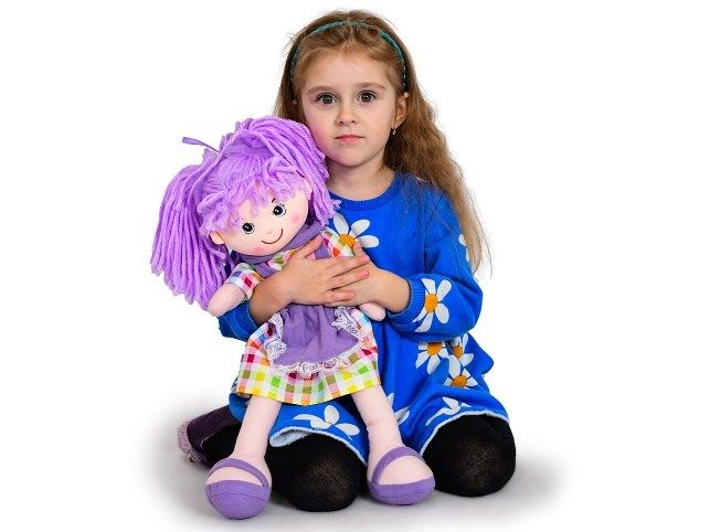 Látková panenka potěší každou holčičku. Má měkké tělíčko, proto je vhodná i pro nejmenší. Panenka umí mluvit a zpívat v češtině: "Halí, belí…", "Travička zelená...", "Pásla ovečky v zeleném háječku…". Fialová panenka Nanynka má 50 cm. Vhodné pro děti od narození.
