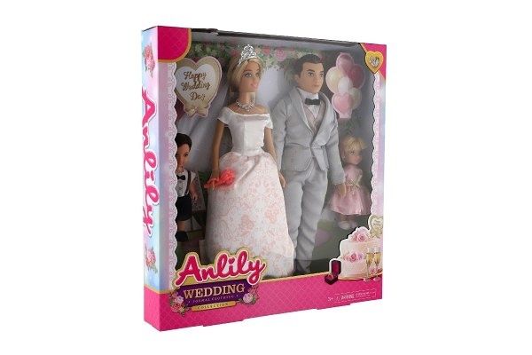 Panenka nevěsta a ženich Anlily plast 28cm s rodinou v krabici 30x32x5cm