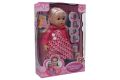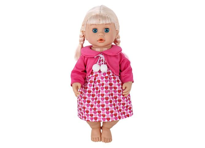 Panenka opakující. Velikost 40cm. 2xAA baterie nejsou součástí. Návod na obale. Po zmáčknutí pravé ruky zazní zvuk a panenka začne nahrávat. Mluvte k panenčiným ústům. Dalším zmáčknutí pravé ruky zazní dvojitý zvuk a nahrávání je u konce. Zmáčknutím levé ruky panenka přehraje nahrávku.
