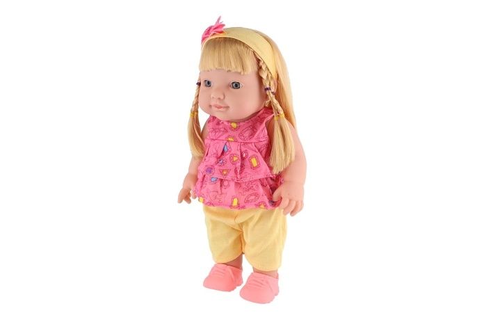 Panenka pevné tělo plast 30 cm na baterie se zvukem 2 druhy v plastové taštičce 15x34x10cm