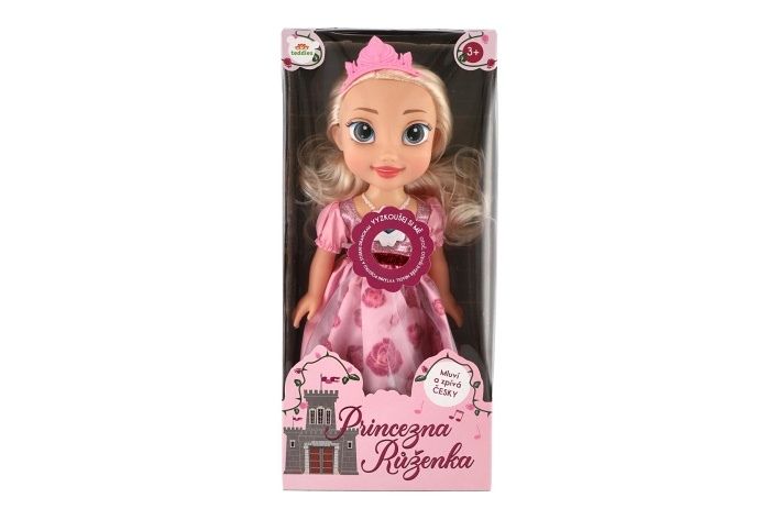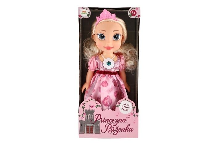 Princeznu Růženku určitě znáte z oblíbené české pohádky. Tato krásná panenka po zmáčknutí kouzelného drahokamu vypráví básničku a zazpívá písničku o tom, jak to tenkrát v pohádce bylo. Panenka Růženka má krásné šaty a husté dlouhé vlasy. Mluví a zpívá česky, na baterie se zvukem.