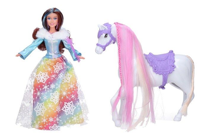 Panenka princezna s koněm a doplňky. Velikost 27 cm. Balení obsahuje panenku, koníka, šperky pro panenku.