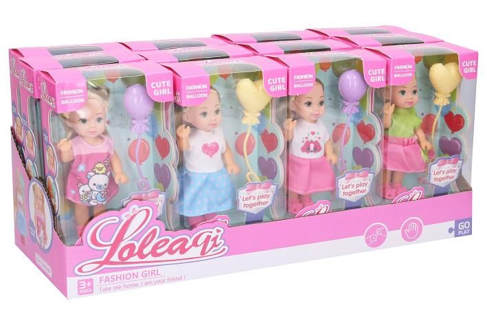 Panenka s balónkem. Velikost panenky 12 cm. 12 ks v display boxu. 4 varianty