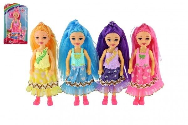 Panenka s barevnými vlasy se sponkou plast 14cm 4 barvy na kartě