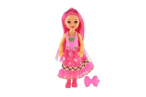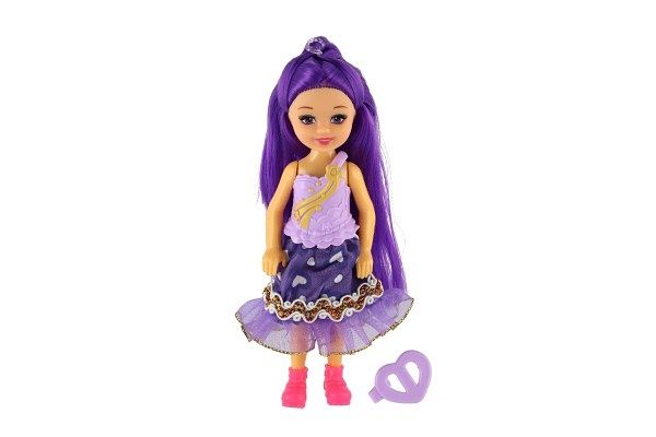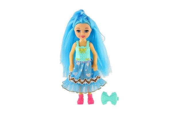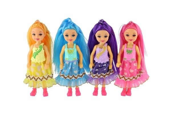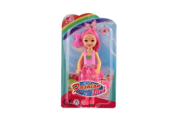 Panenka s barevnými vlasy se sponkou plast 14cm 4 barvy na kartě