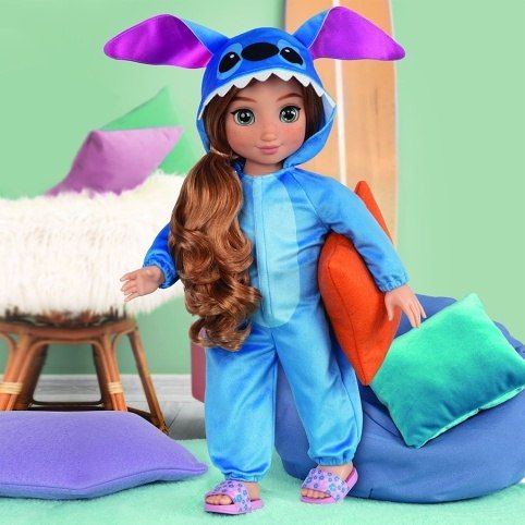 Roztomilá panenka s dlouhými zrzavými vlasy a stylizovaným oblečením inspirovaným oblíbenou postavičkou Stitchem z Disney filmu Lilo a Stitch. Panenka měří přibližně 45 cm a je ideální na mazlení, hru i stylování. Díky roztomilému outfitu s motivem Stitch a realistickému vzhledu se stane skvělou kamarádkou pro každé dítě. Panenka má pohyblivé končetiny a dlouhé česací vlasy.