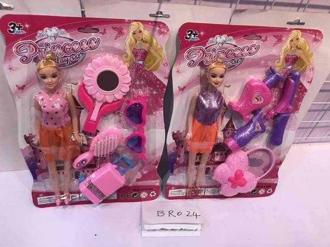 Panenka s doplňky. Velikost 27 cm. 2 varianty - kufr, kabelka.