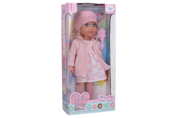 Panenka s hřebenem. Velikost 35 cm. Obsahuje panenku a hřeben na vlasy.