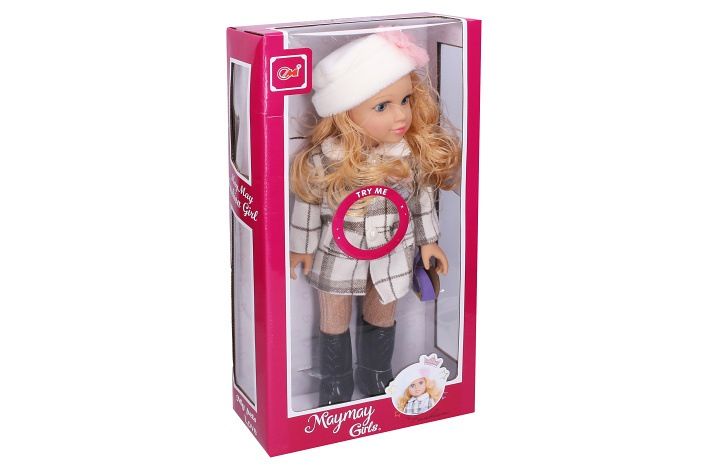 Panenka s kabátem, čepicí a zvukovými efekty. Velikost 48 cm. Zvukové efekty stlačením bříška. 3xAG13 baterie součástí.