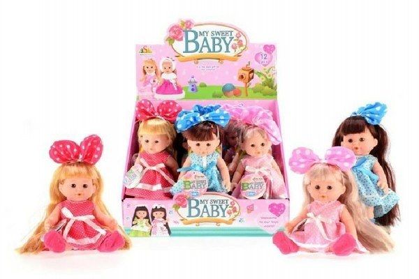 Roztomilá panenka s mašlí bude věrnou společnící pro všechny holčičky. Panenka má pevné tělo. Velikost 20 cm.Vhodné od 2 let.