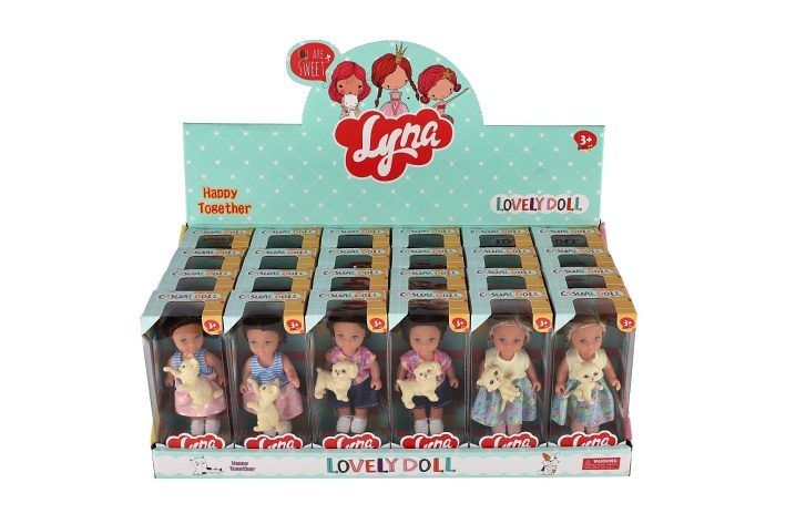 Panenka s mazlíčkem plast 12cm pevné tělo 3 druhy v krabičce 7x15x5cm