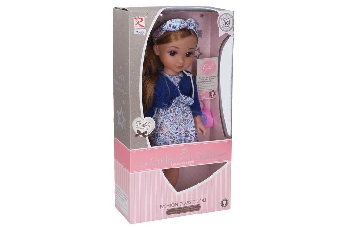 Panenka s šátkem. Velikost 35cm. Zvukové efekty. obsahuje: panenku, kabelku, hřeben. 3xAG13 baterie součástí.