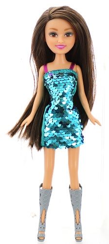 Překrásná panenka Sparkle Girlz s nádhernými sequinovými šatičkami.Součástí balení je i dětská sequinová kabelka.