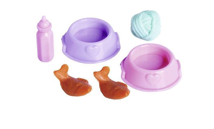 Panenka Steffi s kočičkou s dvěmi malými koťátky a příslušenství - misky, jídlo, lahvička, klubíčko, pelíšek. Velikost panenky 29 cm.