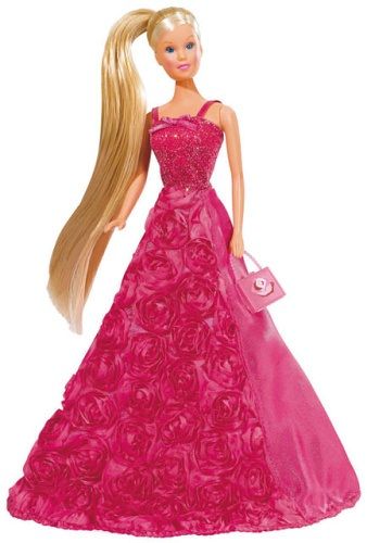Panenka Steffi v nádherných šatičkách s růžemi. Součástí kabelka i hřeben na vlasy. Výška