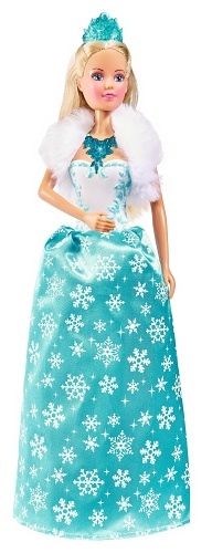 Panenka Steffi jako ledová princezna s magickou světelnou funkcí - tiara s náhrdelníkem svítí na baterie a vločky na sukni svítí/fosforeskují ve tmě. Velikost panenky 29 cm.