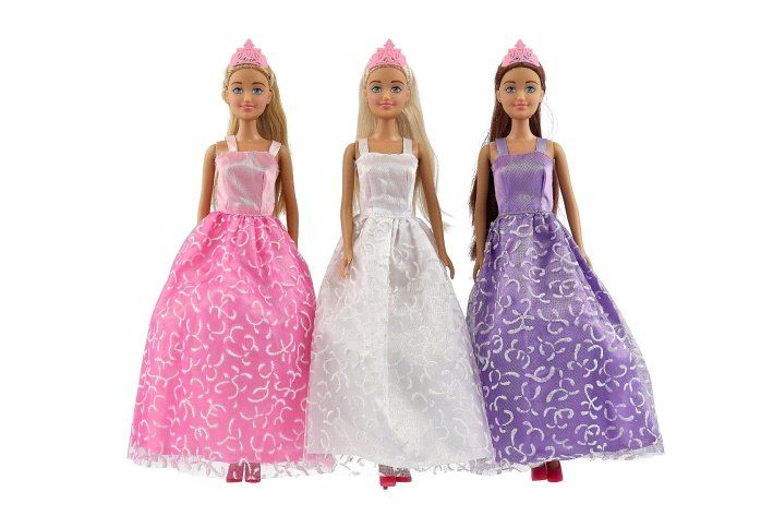 Panenka v šatech kloubová plast 28cm asst 3 barvy v krabici 14x32x5cm