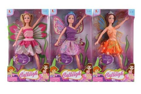 Krásná panenka v šatech s korunkou a křídly. Materiál plast. Panenka má pohyblivé ruce, nohy a hlavu. Baleno v krabici. Rozměry balení cca 18x31,5x5 cm. Velikost panenky 29 cm. Věk 3+