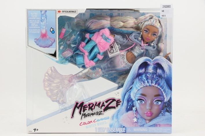 Každá panenka Mermaze Mermaidz™ Winter Waves™ má okouzlující ocas plný třpytek. Několikrát ji otočte panenku hlavou dolů a dozadu, abyste viděli, jak se třpytky lesknou! Panenky mají unikátní ploutev, která mění barvu, když se ponoří do ledové vody. Její ploutev se mění z lesklé růžové na přechodovou růžovou a modrou! Panenky mají na sobě fashion oblečky a spoustu doplňků. Každá panenka Mermaze Mermaidz™ Winter Waves™ má pohyblívý krk, ramena, lokty, zápěstí, trup, pas a ploutve. Panenka má krásné dlouhé vícebarevné duhové vlasy, které nosí napůl dolů, napůl nahoru s dlouhými volnými kadeřemi. Má krásné skleněné oči a skutečné řasy a navíc okouzlující make-up s růžovými očními stíny. Před aktivací změny barvy ploutve sundejte panenceoblečení, aby se nenamočilo. Pak její ploutev polijte ledovou vodou nebo ji ponořte do nádoby s ledovou vodou. Ideální pro hraní ve vodě i mimo ni! Upozorňujeme, že vlasy panenky mohou po ponoření do vody vypadat jinak. Ideální teplota vody 0 stupňů C. Sbírejte i další penky Harmonique™, Kishiko™, Nera™, Crystabella™ a Gwen™.