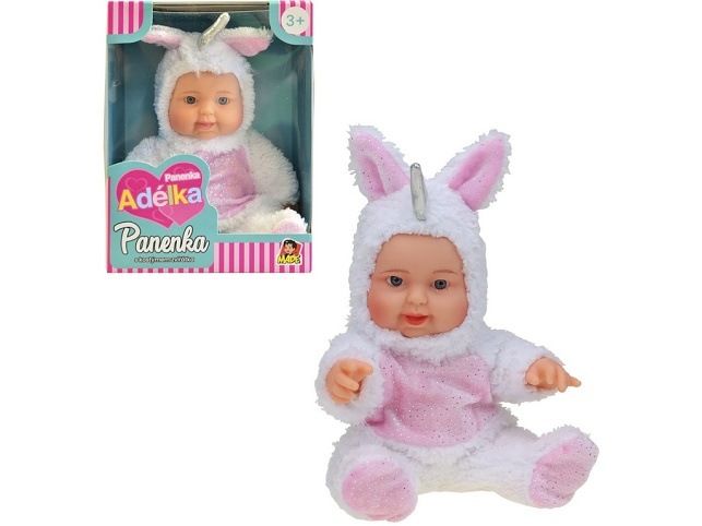 Panenka - zvířátko, 22,5 cm. Panenka v krásném roztomilém oblečku jednorožce, určitě bude ráda dělat společnost, každé malé slečně, která se o ní s radostí postará. Panenka vyrostla do výšky 22,5 cm. Materiál hračky: vinyl. Doporučený věk: 3 +. Balení hračky je box. Produkt je určený pro holky.