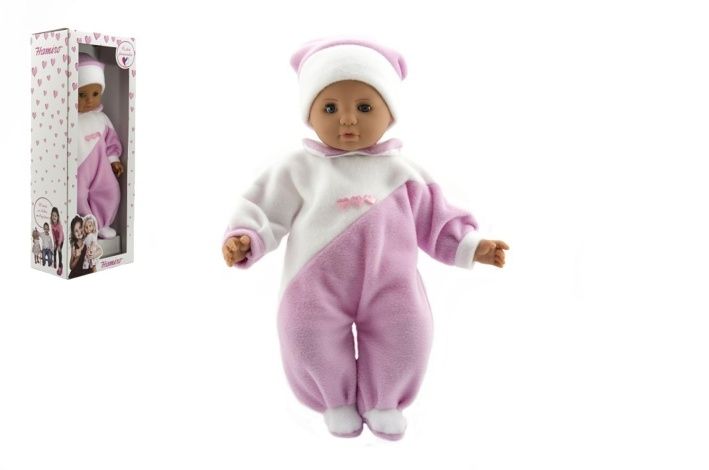 Panenka/Miminko Hamiro 50cm, látkové tělo overal růžovobílý v krabici 24x60x15cm