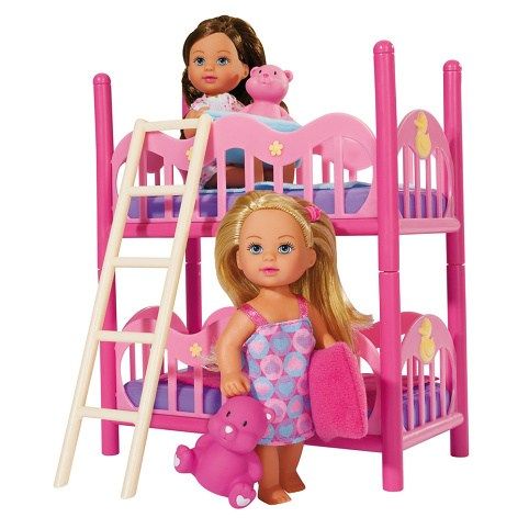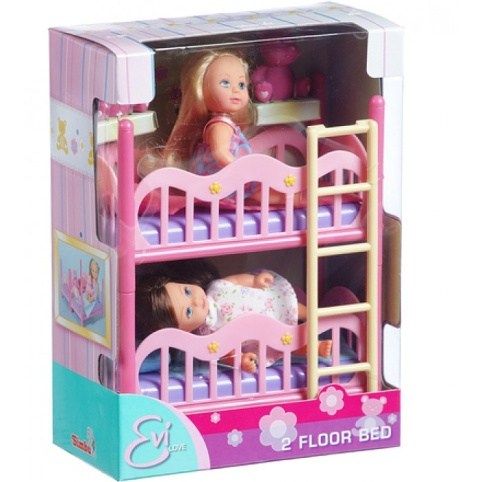Panenky Evičky v pyžamu s palandou. Součástí 2 polštáře a 2 deky. Výška panenky 12 cm.