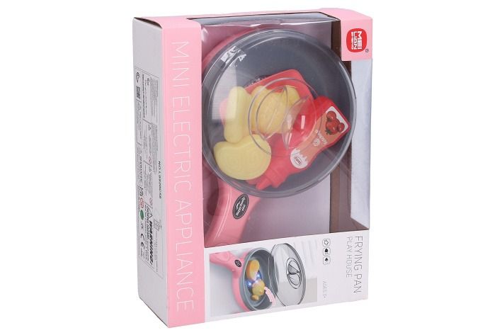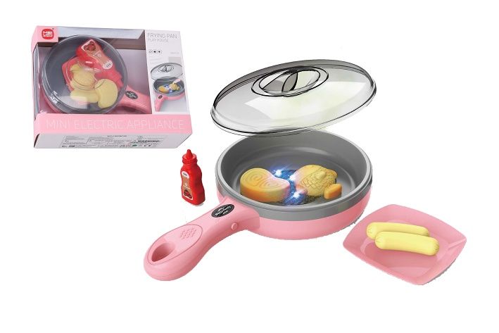 Pánev elektronická. Velikost 27,5x16x7 cm. Během smažení potraviny mění barvu. Obsahuje pánev, pokličku, talířek, kečup, 4ks potravin. Světelné a zvukové efekty. 2xAAA baterie nejsou součástí.