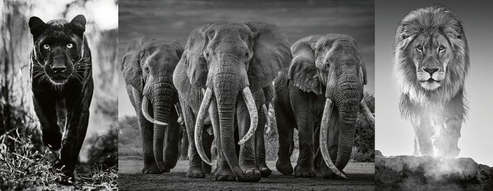 Panter, slon a lev 1000 dílků Panorama Triptychon