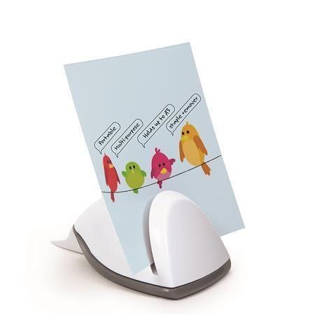 Snadný, víceúčelový, přenosný držák papíru s integrovanou rozešívačkou sponek.