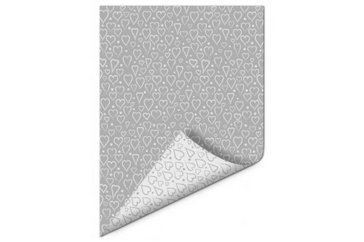 rub: světle šedé pozadí s šedými srdíčky a puntíky