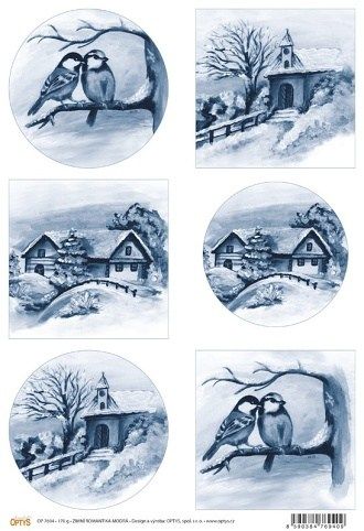 Papír A4, zimní romantika modrá, 170g