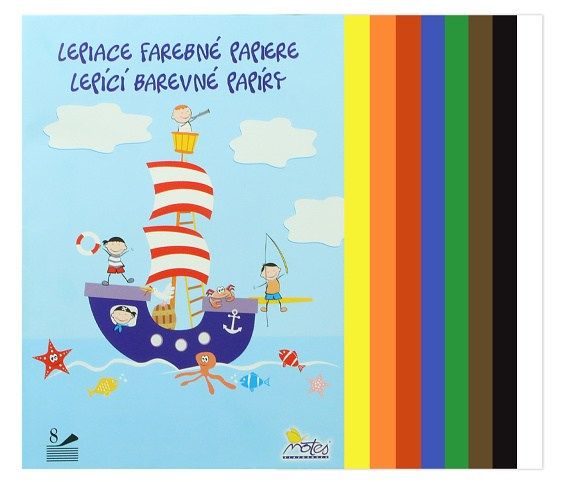 Sada lepících barevných papírů- nepotřebujete žádná lepidla, stačí navlhčit vodou- papír se dobře stříhá ozdobnými nůžkami a snadno jej vložíte i do raznice- vhodné pro scrapbooking, vystřihování, výrobu přáníček, výseků, papírových ozdob apod. - balení obsahuje 8 listů lepících papírů- mix barev- formát: A4