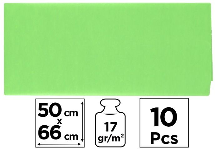 Papír hedvábný 50x66 10ks zelený světlý PN221-17