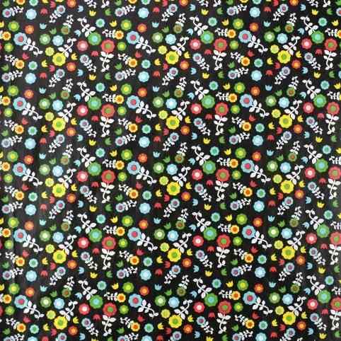 motiv: černý s barevnými květinami