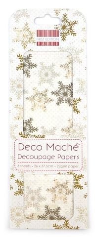 Papír na decoupage natrhejte na menší kousky. Na dekorovaný předmět naneste lepidlo na decoupage a postupně, jako když děláte koláž, pokládejte připravené natrhané kousky decoupage papíru. Povrch papíru uhlaďte jemným plochým štětcem. Papír má speciální strukturu, díky které se nerozpouští a netrhá při navlhčení lepidlem jako ubrousky. Pod vrstvou papíru neprosvítá podklad a barvy i kontury se lepidlem nerozpouští a zůstanou ostré. Papír je jemný, dá se snadno trhat. Drobné sklady papíru se při práci snadno vyhladí.