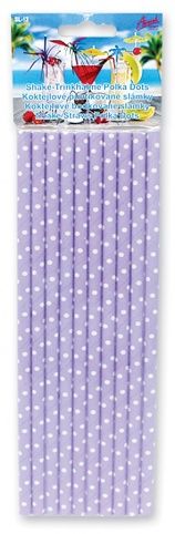 Papírová brčka (slámky) puntikovaná fialová 10ks č. SL-13
