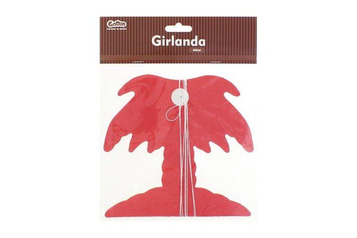 Girlanda palma Pestrobarevná papírová girlanda ve tvaru palem je určena k vyzdobení místnosti při oslavách. Délka dekorace: 300cm