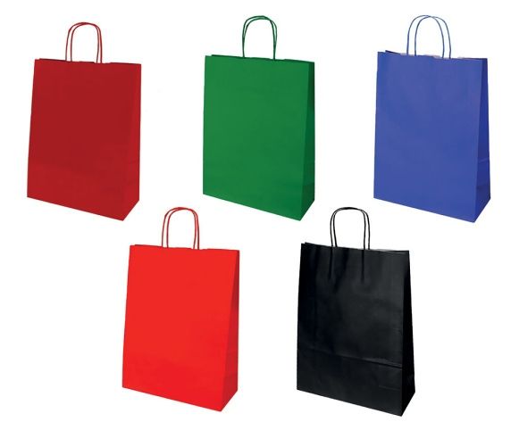 Papírová taška, kroucená ucha. Baleno po 25 ks.