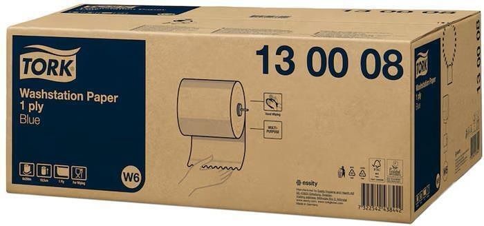 Papírová utěrka, modrá, role, 1vrstvý, vnitřní dávkování, W6 systém, univerzální, TORK 130