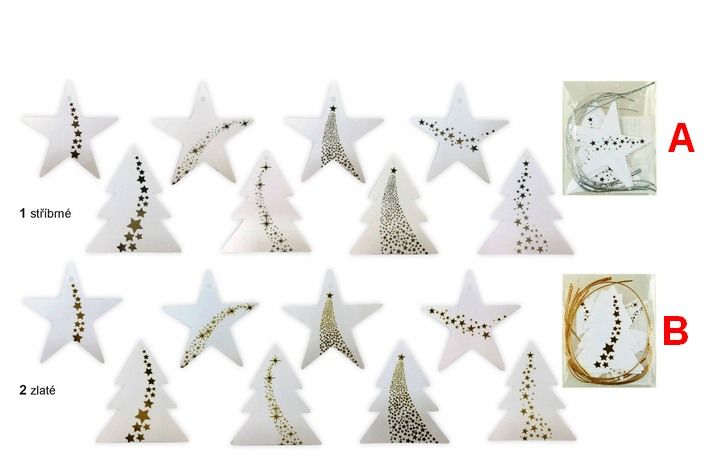 Papírové jmenovky s ražbou strom , hvězda 6,5cm 8ks stříbrné,zlaté 2 druhy