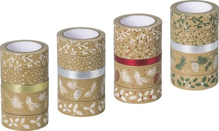 Samolepicí papírové pásky v přírodním provedení s metalickým zdobením využijete mnoha způsoby – při balení dárečků, při výrobě vlastních přání a pozvánek i při dalších kreativních projektech.