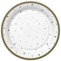 Papírové talíře Ornament Gold, průměr 18cm, balení obsahuje 8ks.. Papírové talíře jsou ideálním řešením pro snadné stolování bez nepořádku.