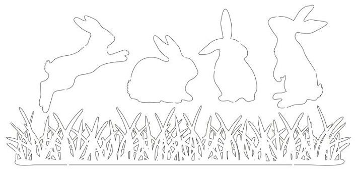 rozměry: tráva 41,5 x 7,2 cm, zajíc 8 x 12 cm