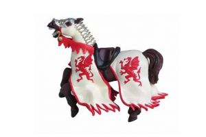 PAPO Kůň dračího krále červený 10x11,5 cm dvě varianty bílý nebo červený přehoz.