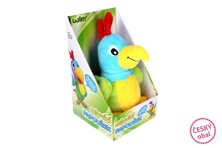 Papoušek zopakuje nejen slova, ale také intonaci a zvuky. Hraní s naším rošťákem nebylo nikdy zábavnější!