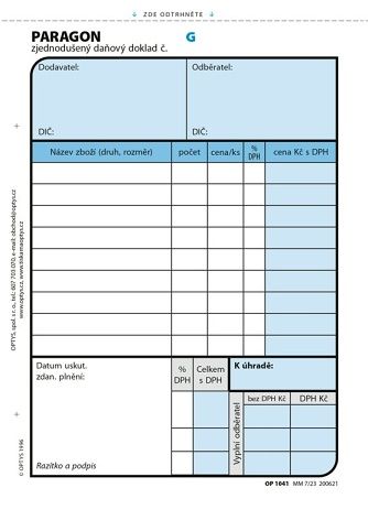 - PAPÍRNICTVÍ / TISKOPISY / ÚČETNÍ A DAŇOVÉ DOKLADY / Paragony / A6 / OPTYS