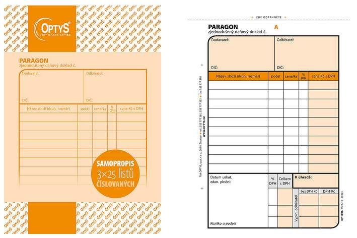 - PAPÍRNICTVÍ / TISKOPISY / ÚČETNÍ A DAŇOVÉ DOKLADY / Paragony / A6 / OPTYS